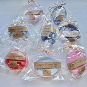 Мыло для тела «Три глины» — с розовой, голубой и чёрной глинами.