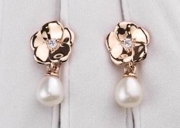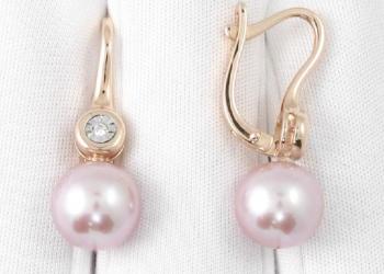 Новые серьги из золота 585 пробы с натуральным пресноводным жемчугом, фианитами swarovski и 3 бесцветными натуральными...