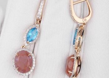 Серьги из золота 585 пробы с разноцветными фианитами. Новые с биркой. Вес 3,54 грамм. Длина 2,8 см.