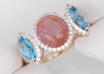 Новое кольцо из золота 585 пробы с топаз ситаллом 3,65 карат и фианитами. С биркой и пломбой производителя. Размер 16,5.