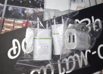 Сетевой адаптер SA-01 (2.1A 2 USB) с подсветкой (цвет бело-зелёный,в пакете) Оптом и в розницу отправка по всей России