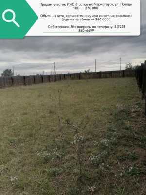 Тип объявления: Продам; Категория земель: Земли С/Х назначения; Вид права: Собственность; Площадь: 342;